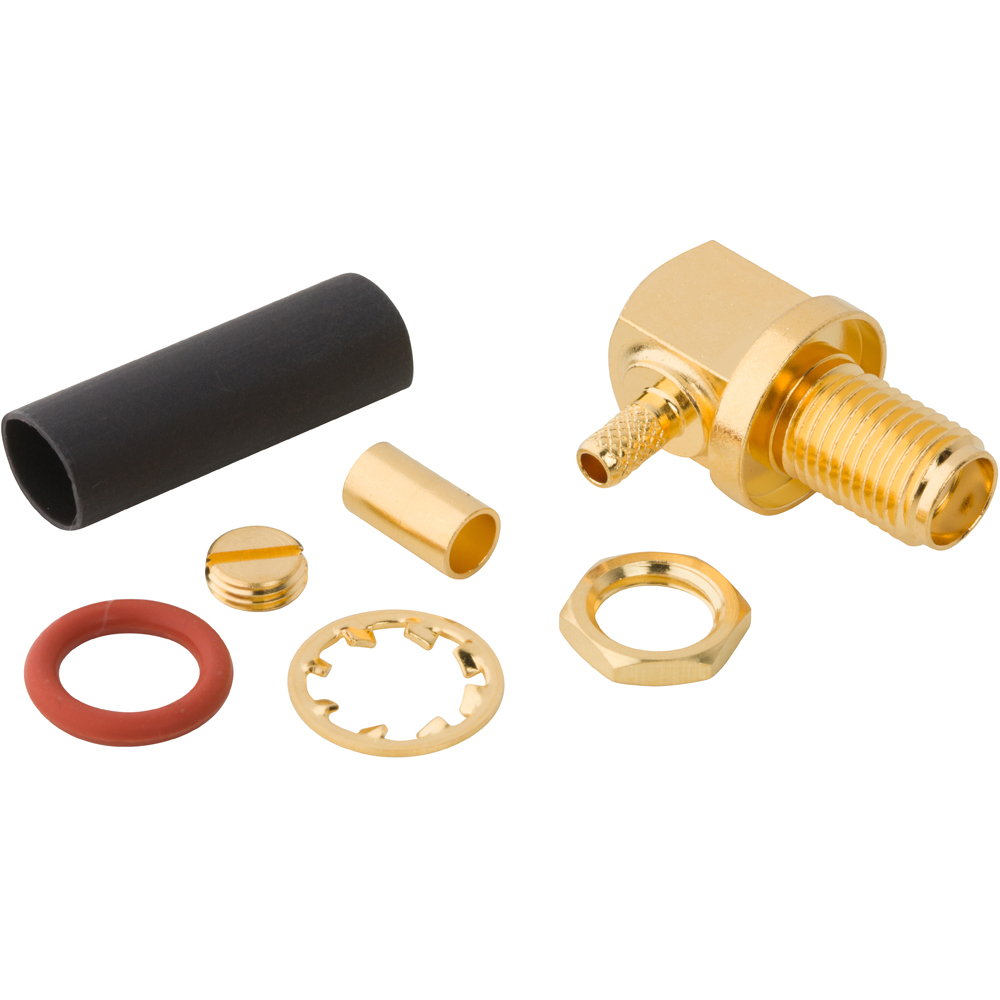 SMA Connector Jack, Female Socket 50 Ohms Free Hanging (In-Line), Right Angle Solder