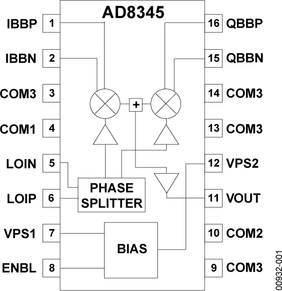 The AD8345 is a silicon RFIC quadrature modulator, designed for use from 140 MHz to 1000 MHz. The part provides a very low noise floor and high output power supporting a significant improvement in output dynamic range. The AD8345 needs a low LO drive level and provides a fully specified 50 ? buffered output.The part provides excellent amplitude and phase balance and sideband suppression specifications to enable higher order/capacity QAM modulated radios.Additionally the AD8345 has been tested and supports the requirements as an IF modulator within CDMA/GSM/W-CDMA cellular infrastructure equipment and as a direct conversion modulator for the 800 ? 900 MHz cellular bands.The AD8345 is supplied in 16-lead Thin Shrunk Small Outline (TSSOP) package with exposed paddle, and fully specified over ?40?C to +85?C temperature range.AVAILABILITYSamples part number (AD8345ARE) and an evaluation board, part number (AD8345-EVAL) are available.OTHER MODULATOR / DEMODULATOR PRODUCTSAD8346 ? 800 MHz to 2.5 GHz Lower Power Direct Up-Conversion ModulatorAD8347 ? 800 MHz to 2.7 GHz Direct Conversion DemodulatorAD8349 ? 700 MHz to 2.7 GHz Low Noise, Higher Output Drive, RF Modulator