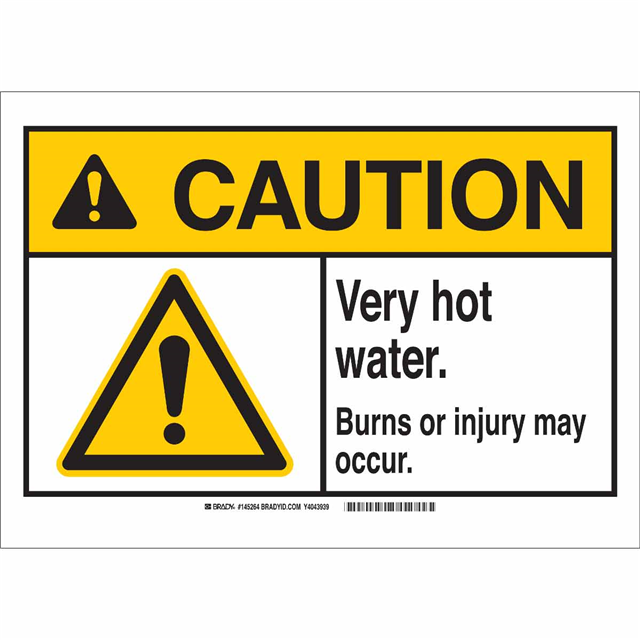 B302 10X14 ANSI BLK,YEL/WHT VRY HOT WATR / Sign