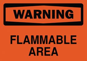 SAFETY SIGN; Sign Legend:Warning Flammable Area; External Height:177.8mm; External Width:254mm; Body Material:Polyester; Colour:Orange/Black; Legend:Warning Flammable Area RoHS Compliant: NA