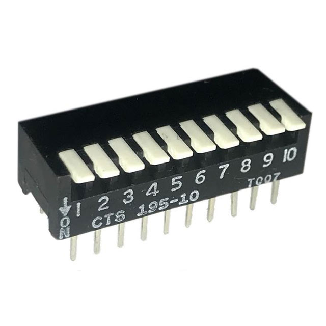 Dip Switch SPST 10 Position Through Hole, Right Angle Piano Actuator 50mA 24VDC