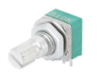 Potentiometers 9.5mm, horizontal, 1 gang, 1K ohm, 15mm knurled shaft, log