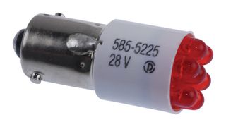 LED BULB RED T-3 1/4; Lamp Base Type:-; LED Color:Red; Bulb Size:T-3 1/4; Power Rating:-; Wavelength Typ:660nm; Luminous Intensity:560mcd; Average Bulb Life:100000h; Supply Voltage:28V; Current Rating:20mA; Product Range:- ;RoHS Compliant: No
