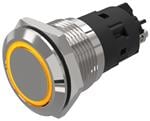 82-6152.2124.Illuminated pushbutton.maintained.22 mm.stainless steel.flush/flat.ring.blue.24 V.screw terminal