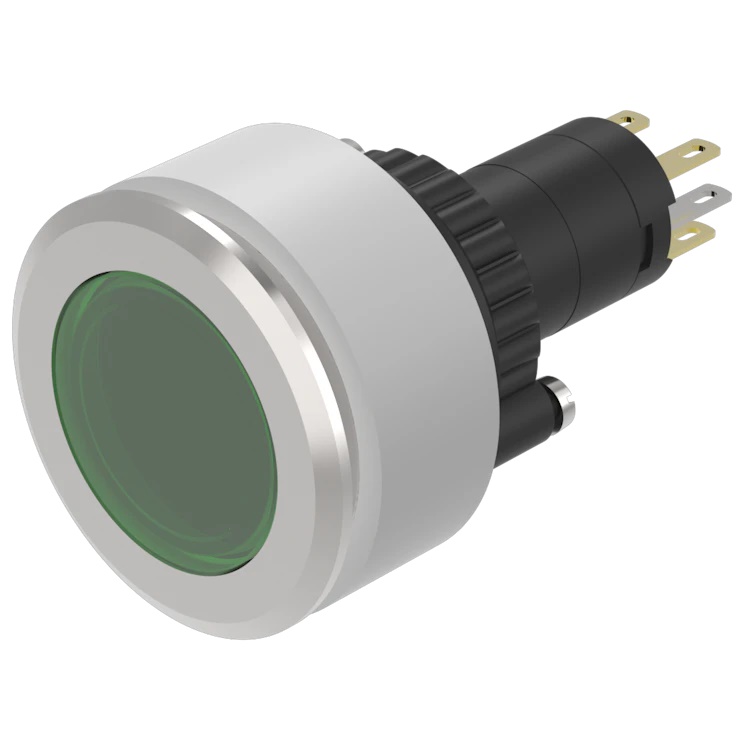 (704.032.218A) ILLUMINATED PUSHBUTTON-ACTUATOR FLUSH MOUNTING NATURAL/RED D35 MOM SCREW, MARKING PLATE WHITE D29 PLASTIC TRANSLUCENT, FRONT SIDE BLACK COLORED