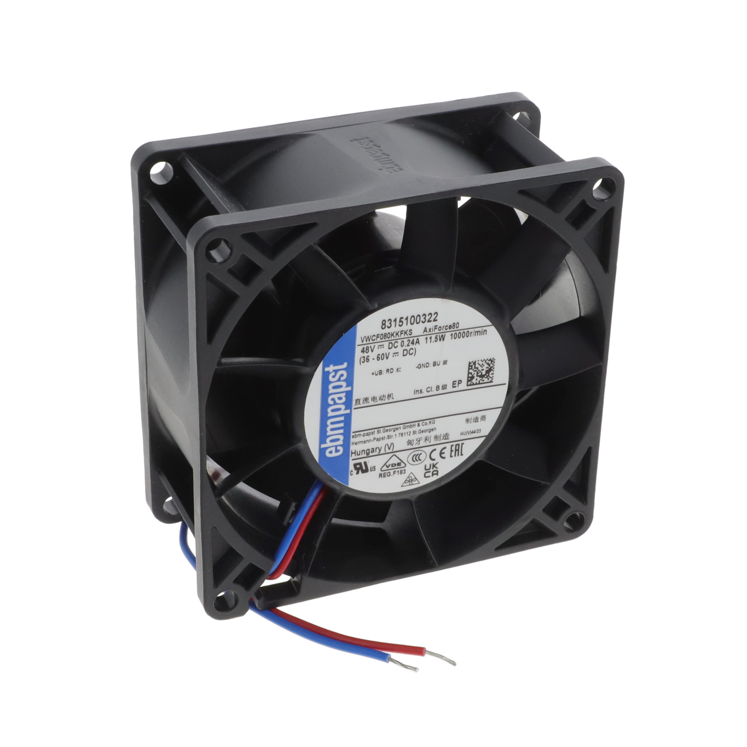 DC Fans DC Tubeaxial Fan, 80x80x32mm, 24VDC, 28.3CFM, 2.3W, 34dBA, 3000RPM, Ball Bearing