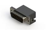 627 Series vertical D-Sub plug connector with 50 pin type contacts that have 15 gold plating. The contacts have .105" (2.67mm) to .160" (4.06mm) long P.C.B tails and the insulator is standard.The body is low profile metal, the