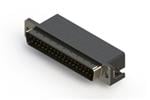 627 Series vertical D-Sub plug connector with 50 pin type contacts that have gold flash plating. The contacts have .105" (2.67mm) to .160" (4.06mm) long P.C.B tails and the insulator is standard.The body is low profile metal and the