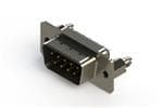 627 Series vertical D-Sub plug connector with 50 pin type contacts that have gold flash plating. The contacts have solder cup tails and the insulator is standard.The body is low profile metal and the flange is mounted with .120"