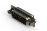 627 Series vertical D-Sub plug connector with 50 pin type contacts that have 15 gold plating. The contacts have solder cup tails and the insulator is standard.The body is low profile metal and the flange is mounted with #4-40 UNC