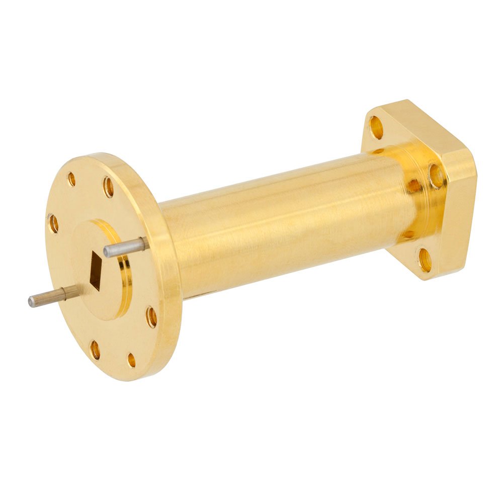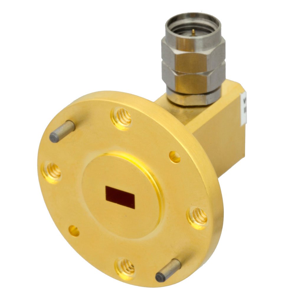 Wr-19 To 1.85Mm Male Waveguide To Coax Adapter Ug-383/U-Mod Round Cover Standard With 40 Ghz To 60 Ghz U Band In Aluminum, Gold |Fairview Microwave SMW19AC001-VM