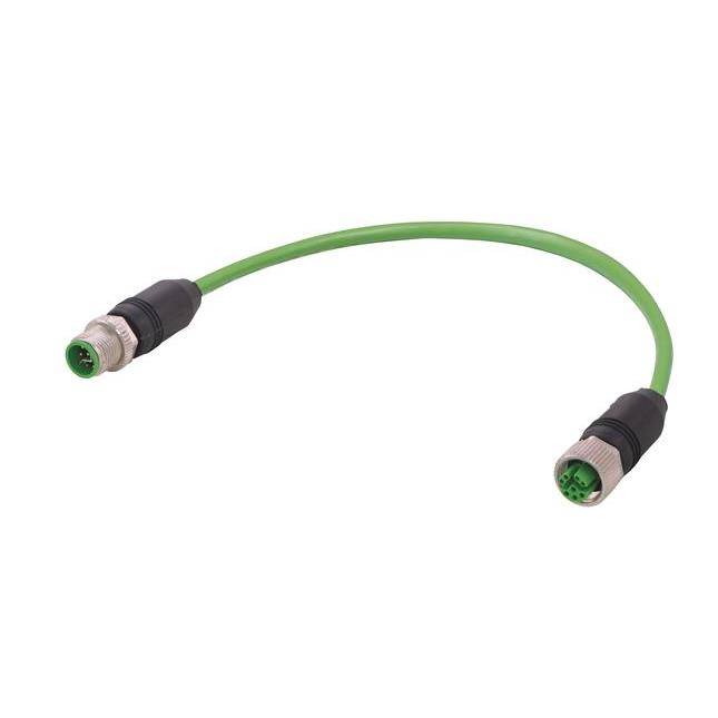 M12 A-Code Double Ended Overmolded Cable Assembly, 4Pin, Shielded, Straight Male To Angled Female, Pur Black, 0.3M |Harting 21347877474003