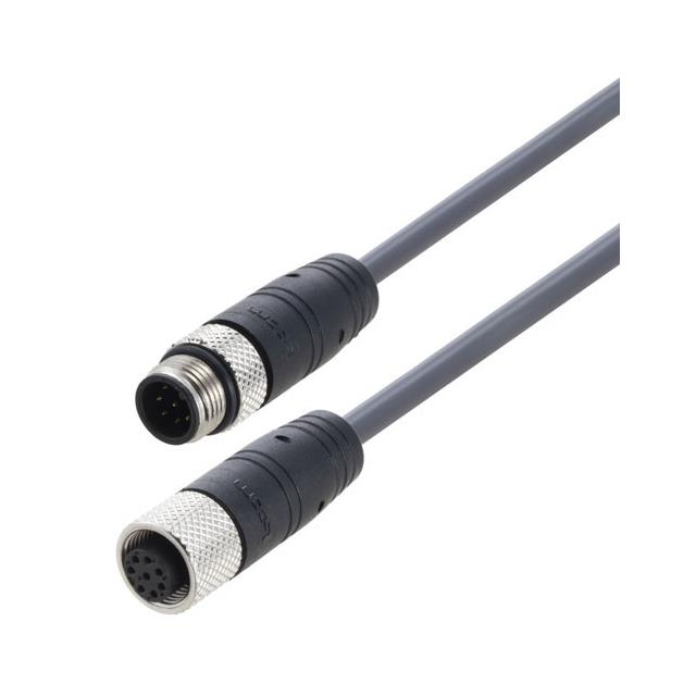 M12 8 POSITION A-CODE SHIELDED INDUSTRIAL OUTDOOR ASSEMBLY, PVC JACKET, M/F, GRAY, 2.0M