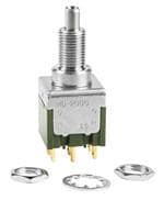 PUSHBUTTON SWITCH SPDT ON-ON; Switch Operation:On-On; Contact Configuration:SPDT; Contact Voltage AC Nom:125V; Contact Voltage DC Nom:30V; Contact Current Max:6A; Switch Terminals:Solder; Product Range:MB2000 Series; SVHC:No SVHC (17-Dec-2015); Actuation Type:Plunger; Approval Bodies:CSA; Approval Category:UL Recognised; Bush Length:8.5mm; Contact Current AC Max:6A; Contact Current DC:3A; Contact Resistance:10mohm; Current Rating:3A; Dielectric Strength VAC:1000VAC; External Depth:7.9mm; External Width:13mm; Flammability Rating:UL94V-0; Height:21mm; Insulation Resistance:1000Mohm; Insulation Resistance Voltage:500VDC; Material:Diallyl phthalate resin; No. of Electrical Operations:25000; No. of Mechanical Operations:100000; Operating Temperature Max:85°C; Operating Temperature Min:-30°C; Panel Cutout Diameter:16.5mm; Thread Size:¼-40