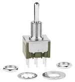 SWITCH TOGGLE SP3T 6A 125VAC; Produc; SWITCH TOGGLE SP3T 6A 125VAC; Product Range:-; Contact Configuration:SP3T; Switch Operation:(On)-On-(On); Switch Mounting:Panel; Contact Current Max:6A; Contact Voltage AC Nom:125V; Switch Terminals:Solder