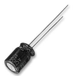 Cap Aluminum 22uF 25V 20% (6.3 X 7mm) Radial 2.5mm 55mA 1000 hr 85°C Bulk