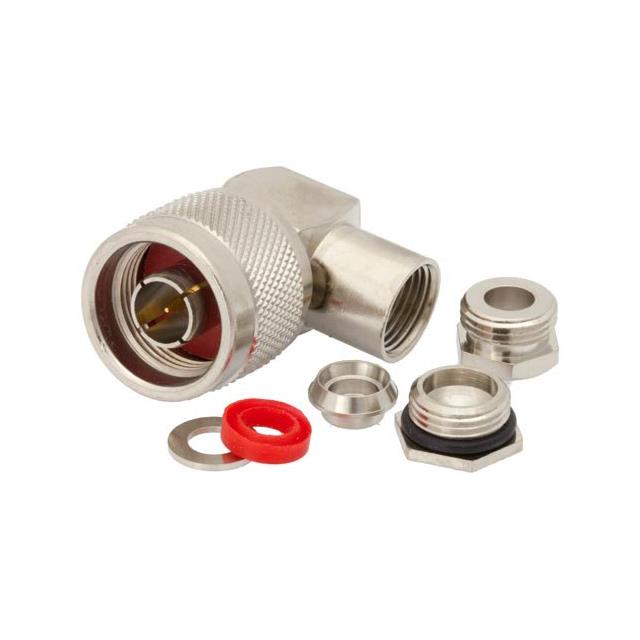 N Type Connector Plug, Male Pin 50 Ohms Free Hanging (In-Line), Right Angle Solder