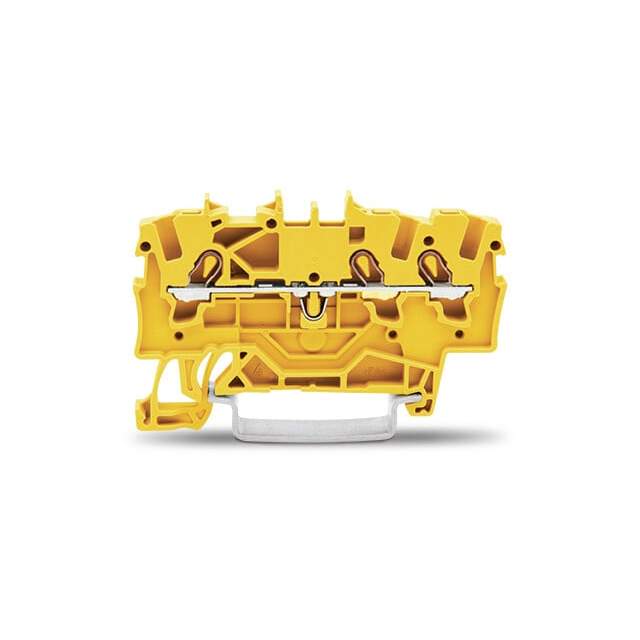 3-conductor through terminal block; 2.5 mm ; suitable for Ex e II applications; side and center marking; for DIN-rail 35 x 15 and 35 x 7.5; Push-in CAGE CLAMP ; 2,50 mm ; yellow