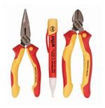 VDE PLIERS SET 3-PC; Kit Contents:Combination Pliers Series Z01006 Diagonal Cutters Series Z12006 Needle Nose Pliers Series Z05006; Product Range:-; SVHC:No SVHC (15-Jun-2015); Finish:Chrome Plated; Handle Type:Insulated 1000V AC; Joint Construction:Lap Joint (DynamicJoint); Material:High-quality steel tool hardened polished; Standard:VDE GS IEC 60900:2004; Weight:820g