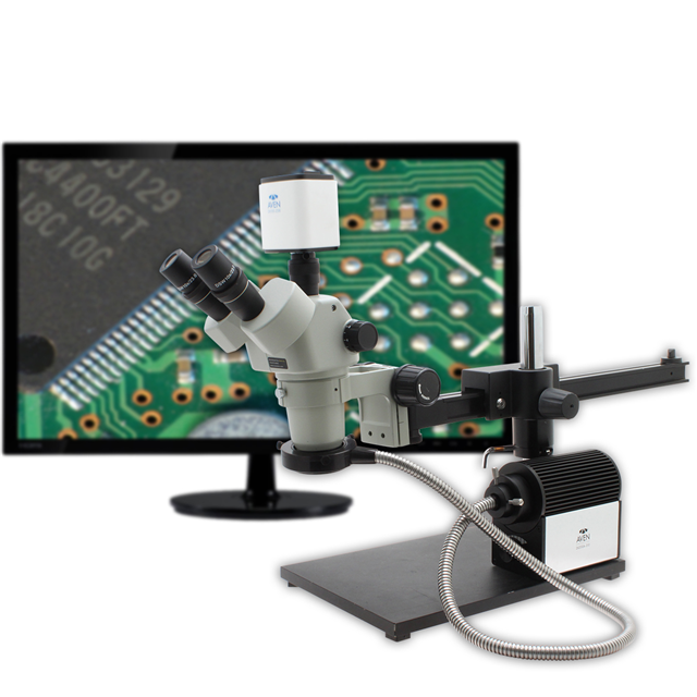 STEREO ZOOM TRINOCULAR MICROSCOPE SPZV-50E [6.7X-50X] ON BOOM STAND WITH INTEGRATED LED LIGHT & USB 6M CAMERA ESD SAFE ROHS COMPLIANT: YES